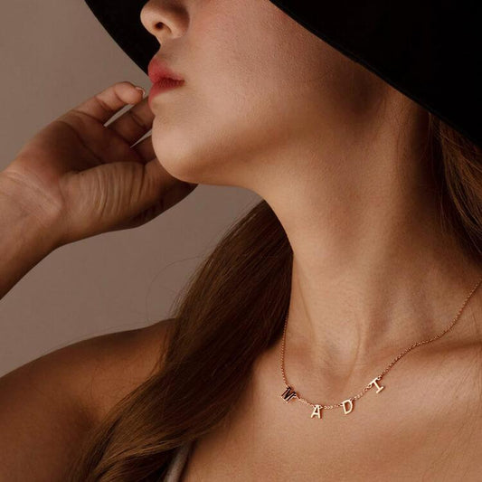 Rose Flower Inlaid Birthstone PendantName Necklace